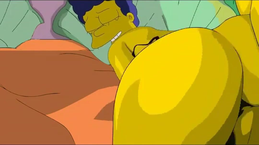 «У Гомера Симпсона совсем не было настроения, пока он не вошел в спальню и не увидел там свою сексуальную женушку Мардж. Эта синеволосая бестия надела сексуальный костюмчик, желая порадовать его жаркой еблей. Возбужденная сперва взяла хуй мужа в ротик и принялась делать ему смачный минет, а потом отдалась в пизду. Трахнувшивсь в нескольких позах она снова взялась сосать, чтобы получить сперму в рот.»
