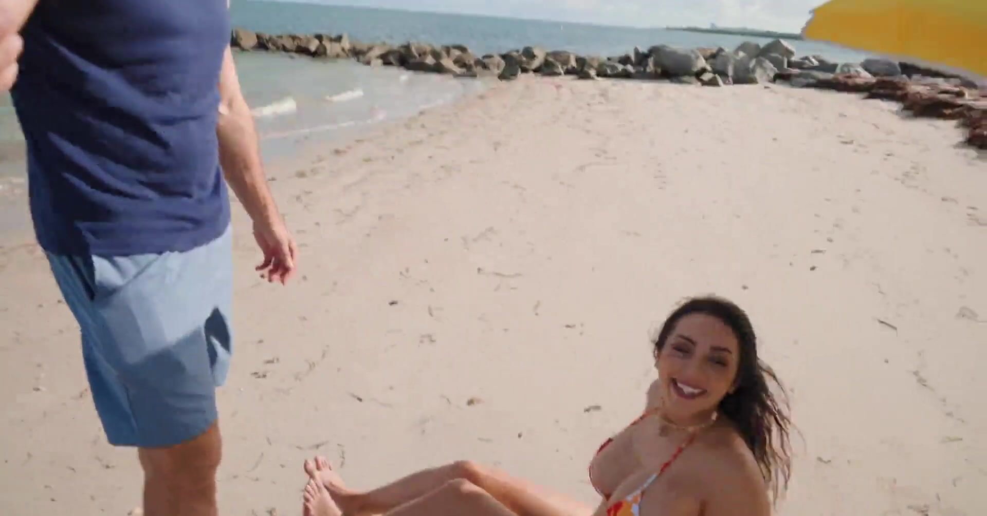 Лысый цепляет девушку на пляже, которую разводит на секс