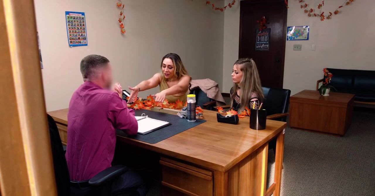 Премия за секс втроем с начальником - он трахает милфу и молодую телку