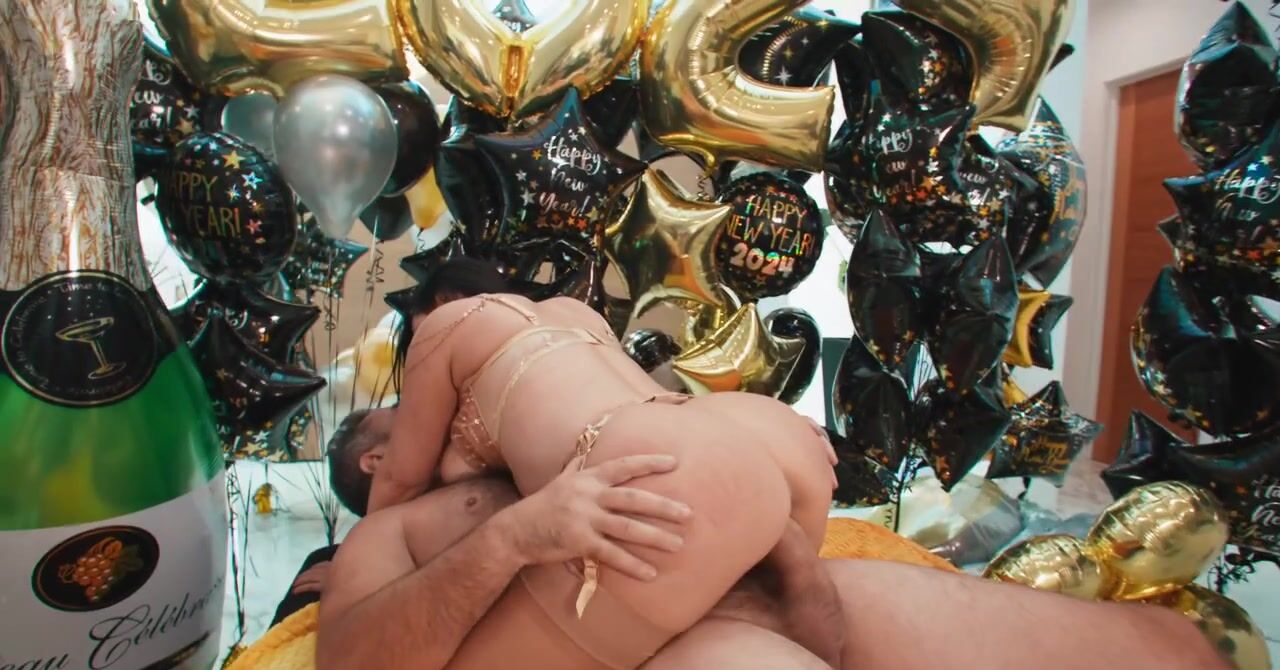 «Сочная красотка с большими натуральными сиськами поздравляет мужика с новым годом и предлагает заняться жестким сексом. Эта черноволосая бестия обожает ебаться и всегда рада пошалить. А этот год она намерена начать с особенно развратной ебли. Сперва опытная сучка берет толстый хер в ротик и делает глубокий минет, после которого отдается в мокрую пизду. Зрелка даже сперму проглотила, ей было очень вкусно.»