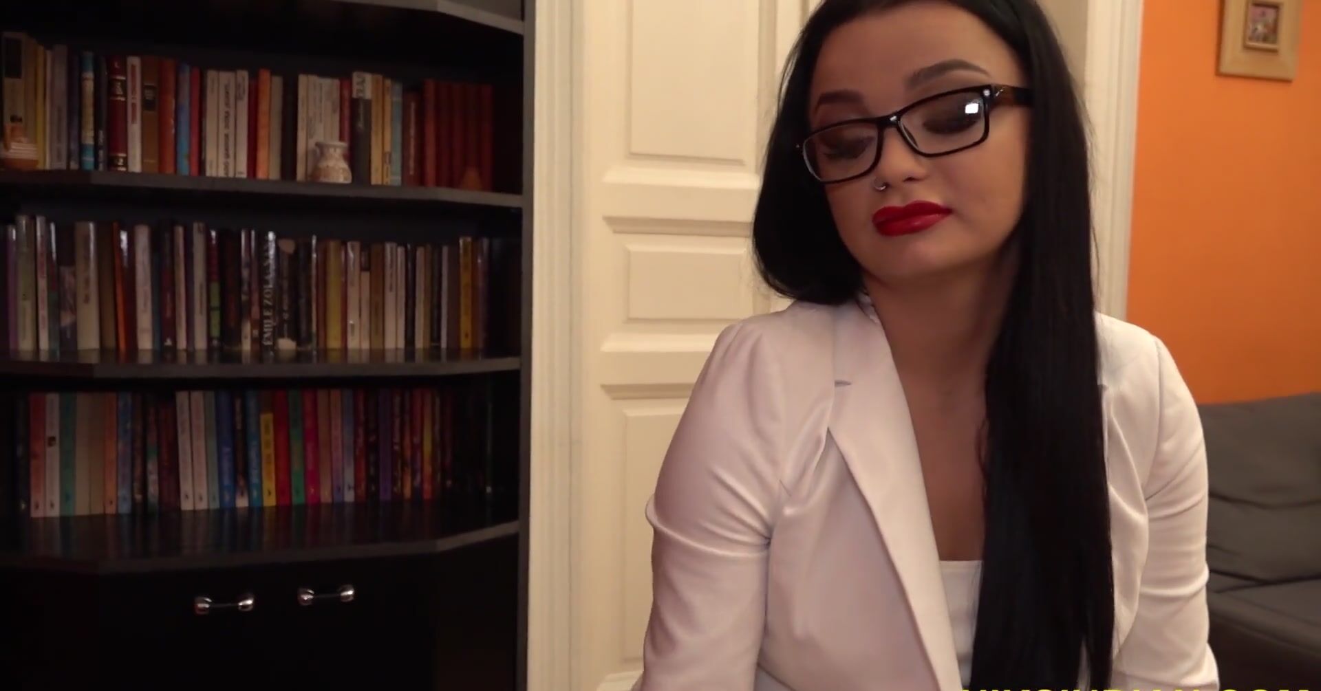 «Преданная фирме работница пытается удовлетворить полицейского во время обыска офиса. Брюнетке в очках не нужно, чтобы контору закрыли и она оказалась без работы. Поэтому опытная сучка выкладывается на полную и творит нереальный разврат. Эта бестия принимается делать смачный минет, после чего отдается в мокрую пизду. А ещё милфа усердно работает своим языком и вылизывает анус блюстителя порядка, а так же лижет яйца.»