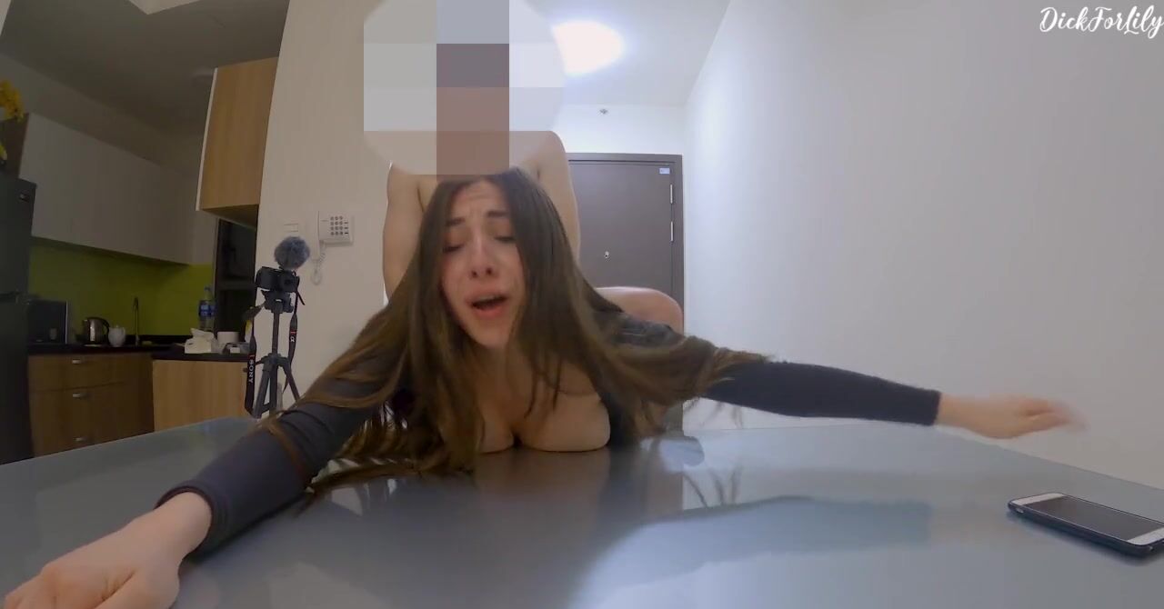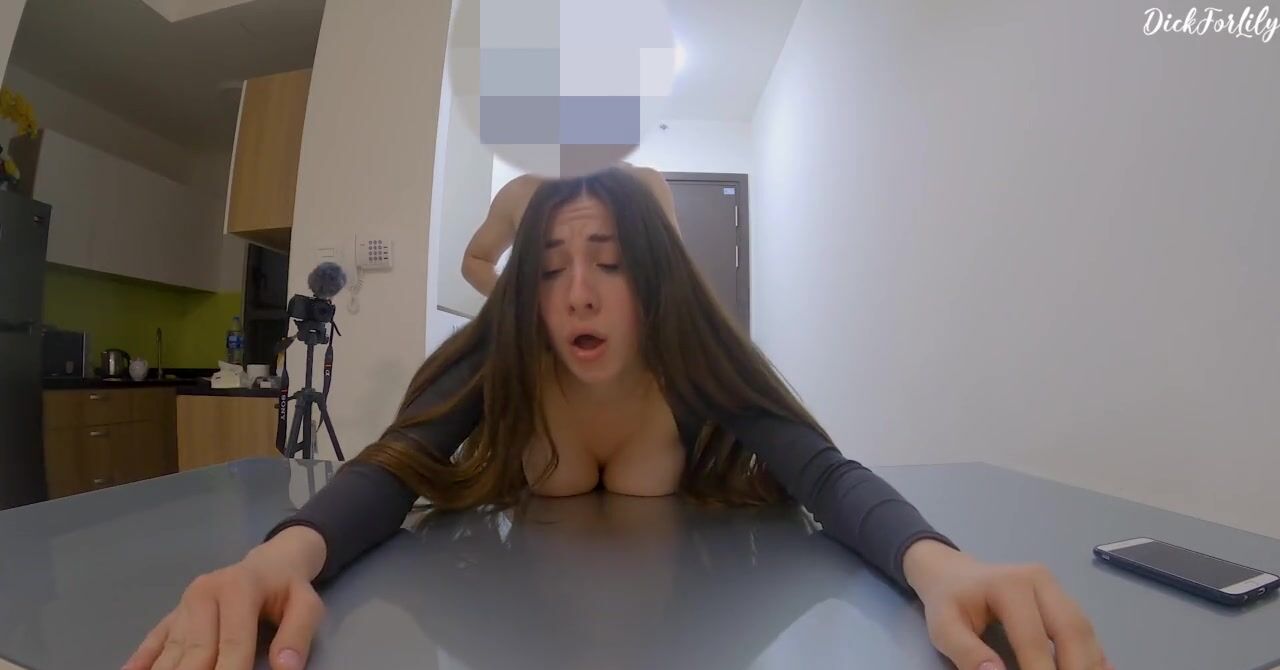 «Красотка ложится на стол и запрокидывает голову назад, чтобы сделать бойфренду глубокий минет. Он буквально трахает черноволосую телку с натуральными сиськами в глотку, но ей такое даже нравится, цыпочка заводится на не шутку. Она умоляет трахнуть её теперь в пизду, теперь становится очень трудно, хочется ебаться. Жесткий секс доставляет удовольствие, горячая развратница испытывает оргазм и получает сперму на живот.»