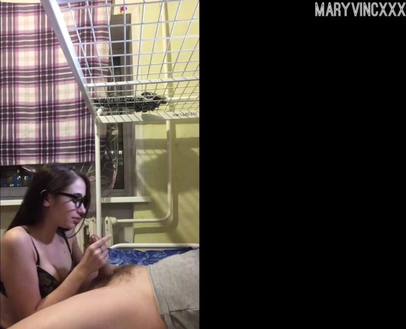 Студентка в общаге страстно отсасывает член нового парня