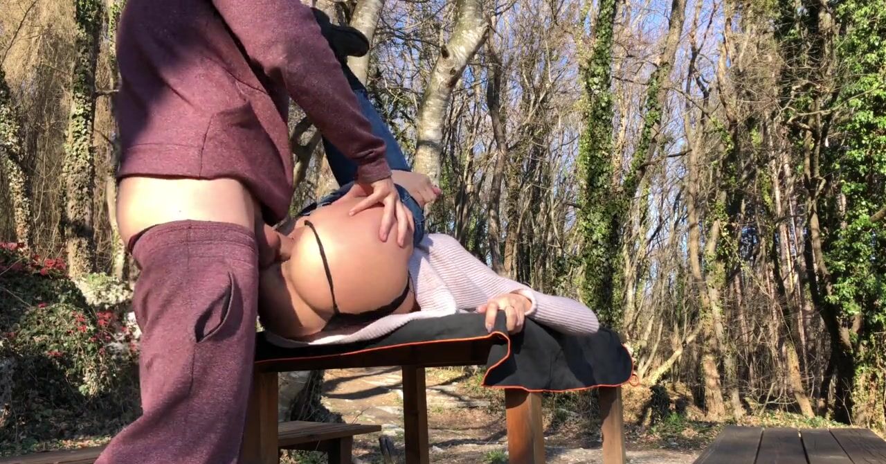 «Пара выбралась на пикник в лес, но закончилась их поездка довольно неожиданно, по крайней мере, девушка не думала такое делать. Но она возбудилась и стала соблазнять бойфренда на интим, желая попробовать трахнуться на природе. Телка показала сочную попку, сняв джинсы и насадилась на хер своей мокрой киской. А потом девчонка уже легла на стол и задрала ноги, штаны во время спонтанной ебли она снимать не стала.»