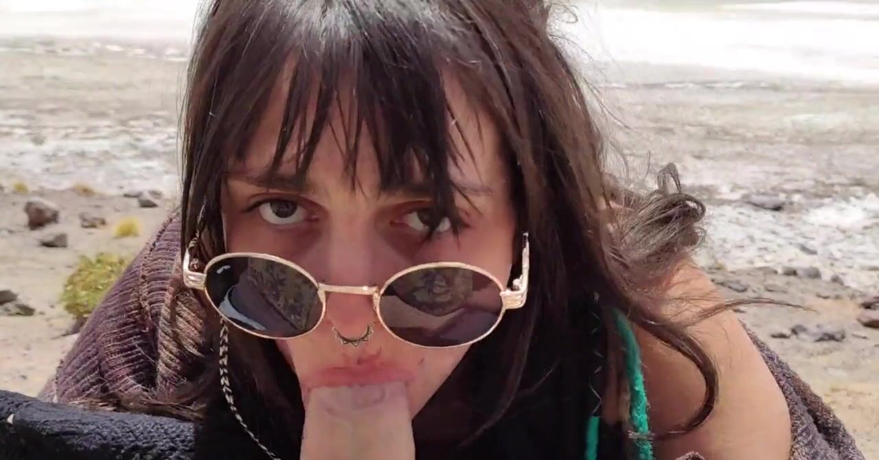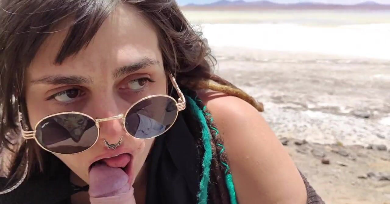 Неформалка в пустыне смачно сосет хуй и глотает сперму
