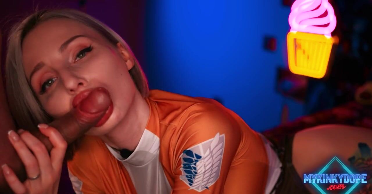 «Белокурая красотка с короткой стрижкой хвастается новым косплеем, этот сексуальный наряд из аниме ей очень идет, выглядит татуированная цыпочка нереально соблазнительно. Но оделась она так не по приколу, развратница хочет заняться сексом в этом костюме. Желание красавицы для парня закон, он с огромным удовольствием угощает её своим членом и принимается жарко ебать раком в киску, а так же наслаждается минетом.»
