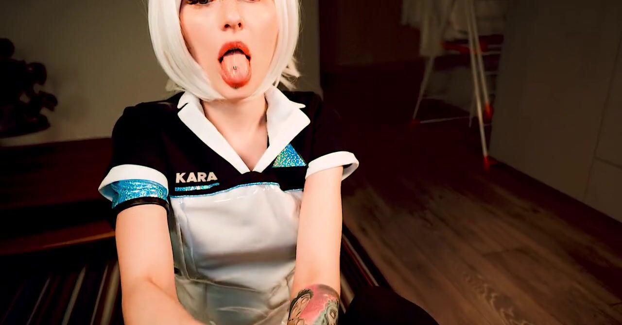 «Красивая девушка робот выполняет домашние дела, а ещё она обязана ублажать сексуальные желания хозяина, такая функция у неё тоже есть. Эта привлекательная блондинка отвлекается от мойки посуды и берется за сосания хуя. Похоже, что ей самой это нравится или же девка просто запрограммирована изображать удовольствие. Покорная роботша встает раком после минета и принимает в киску крепкий член паренька.»