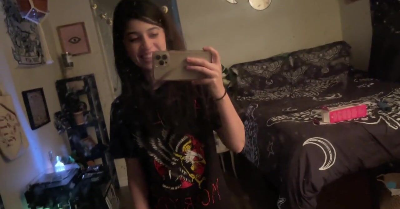 «Стройная студентка уговаривает подругу неформалку на лесбийский секс, в жизни ведь нужно попробовать всё. Эта худышка с маленькими сиськами даже домашнее видео начинает снимать во время однополого секса. Подруга соглашается, её это всё даже очень возбуждает. Эта привлекательная девушка с татуированным телом и пирсингом на лице отдается в бритую киску и получает удовольствие от резинового страпона, которым её трахает подружка.»