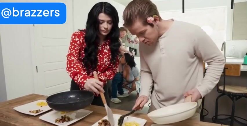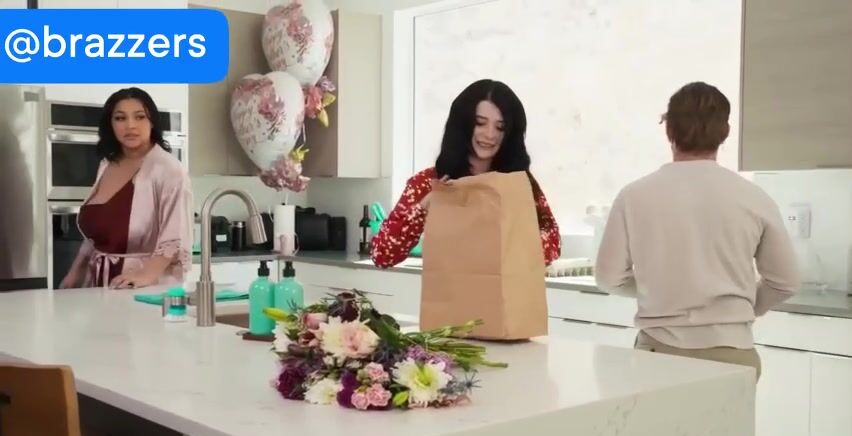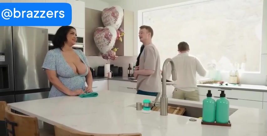«Сочная мачеха не слишком рада, что в гости приехала дочка с её парнем, чтобы поздравить её с днем матери. Эта черноволосая бестия с большими натуральными сиськами осталась бы только с пасынком, который бы жарко трахал её в бритую пизду. Но мамочка всё равно наслаждается еблей с пасынком, когда никто не видит. Этот пацан принимается страстно вылизывать её бритую пизду на кухонном столе и жарит милфу.»