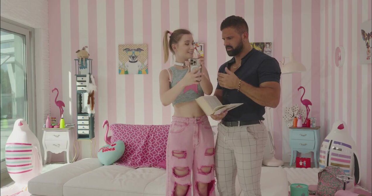 «Милая девушка с хвостиками обожает розовый цвет, а ещё ей нравится жесткий секс. Им худышка и собирается заниматься. Она приводит к себе домой опытного мужика и набрасывается на твердый член. Размер хуя довольно большой, но у стройной крошки с маленькими сиськами получается заглотить его полностью. Она сделала глубокий минет и отдалась в бритую пизду, получая нереальный кайф от грубой ебли в разных позах.»