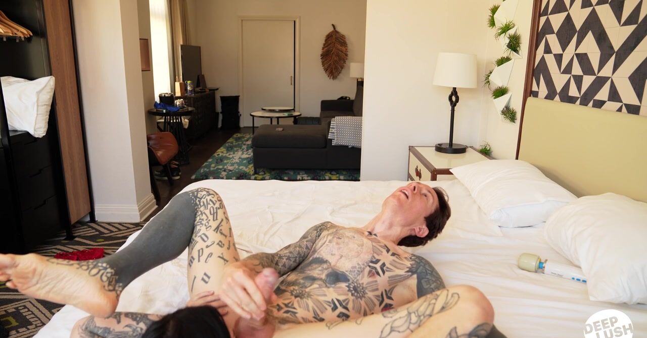 Татуированный парень ебет сочную брюнетку и доводит её до оргазма