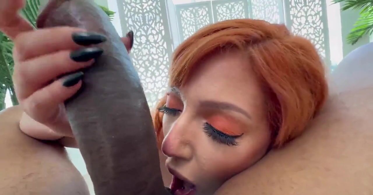Рыжая милфа с сочным телом отдалась негру с огромным хуем в жопу