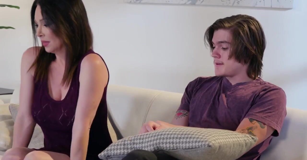 «Мачеха обняла пасынка во время просмотра фильм и ощутила, что его член стал твердым. Неужели парня возбудила именно она, его мачеха? Да, так и есть, парень уже давно хотел поиметь мамочку, но не мог признаться в этом. Сама же милфа думала о сексе с ним. Теперь она может насладиться половым актом по полной и принимается делать ему жаркий минет, после которого уже отдается в мокрую киску на диване, получая удовольствие.»