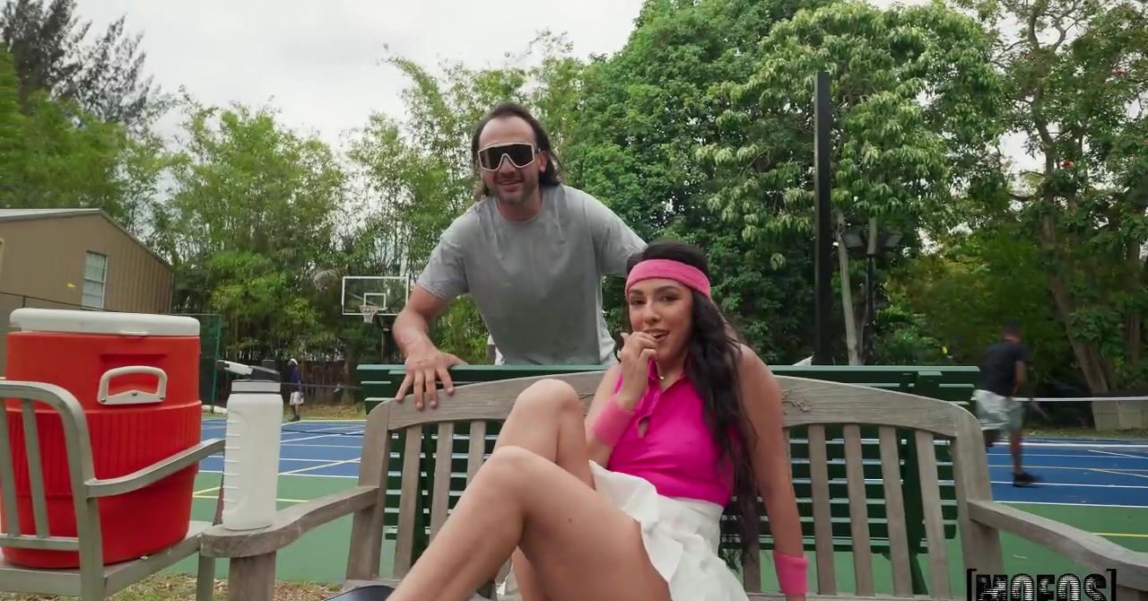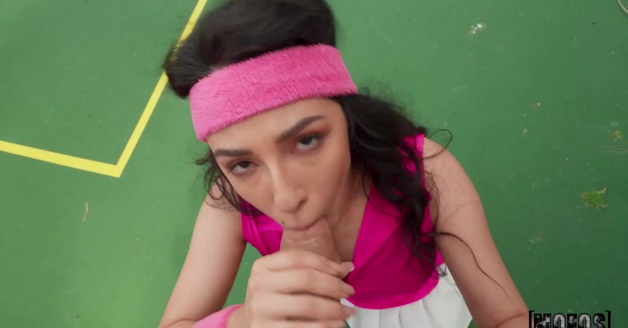 «Привлекательной подруге становится скучно играть в тенис, поэтому эта девушка задирает юбку и показывает сочную попку, соблазняя приятеля на интим. Уже вскоре брюнетка отводит его в сторону и там принимается делать страстный минет, как следует работая ротиком. Брюнетка отсосала хер как следует и сама же получила удовольствие. А потом она уже наслаждается вагинальным сексом и кончает. Сперму подруга хочет принять на лицо.»