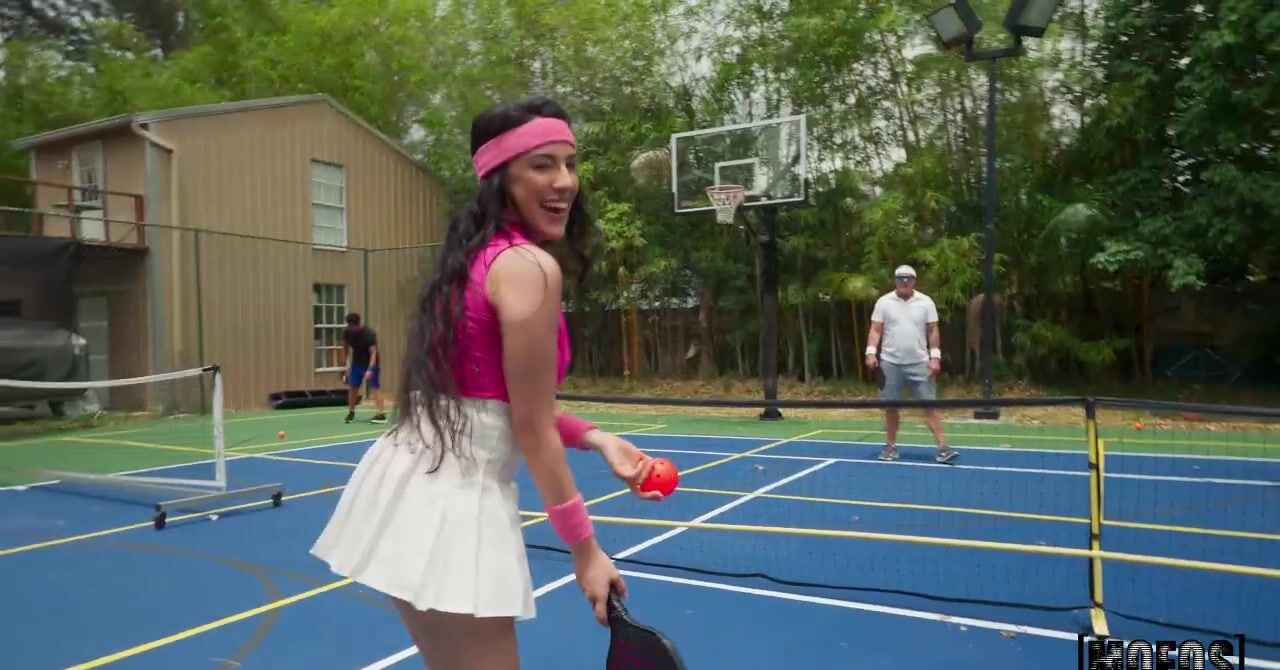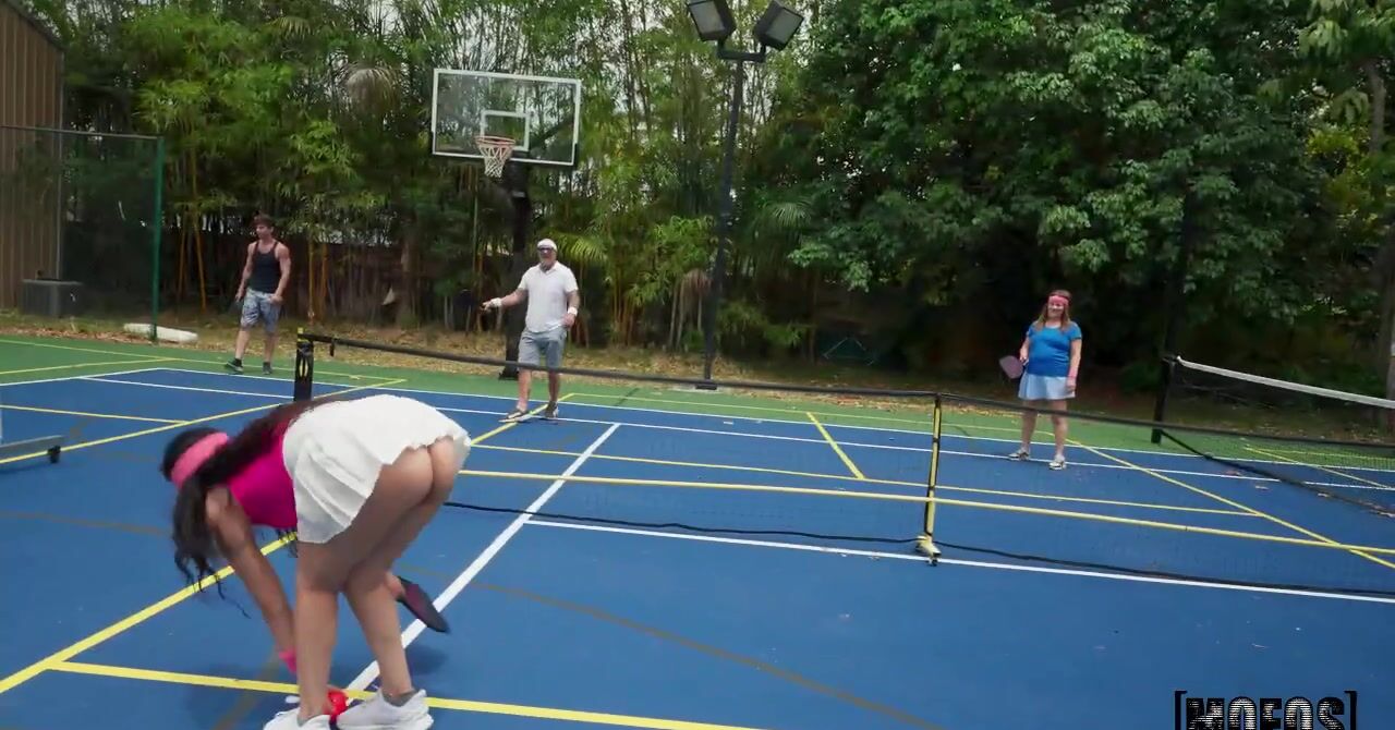 Подружка задирает юбке и соблазняет во время игры в теннис